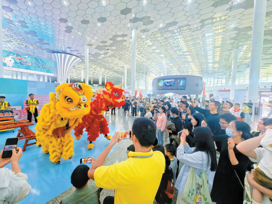 在深圳宝安国际机场举办的“遇见宝安·文明有礼”主题活动中,国家级非遗项目上川黄连胜醒狮团的精彩展演,棉塑、木刻画、夏氏灯笼等非遗精品的展示体验,古琴演奏的悠扬旋律,让来自五湖四海的宾客沉浸式感受宝安千年文脉与现代活力。如今,这类“非遗+文明”展示活动已走进社区、商圈、校园,通过“活态传承”让传统文化成为文明城市的鲜活注脚,让市民在文化熏陶中提升文明素养。